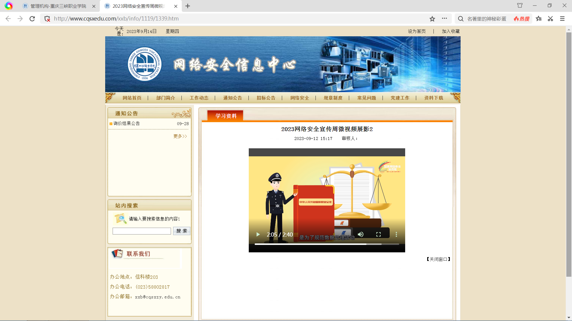 为贯彻落实习近平总书记对国家网络安全工作的重要指示,提升全民网络安全意识和技能,引导我校师生树立正确的网络安全观,提高网络安全意识,营造安全、健康、文明的网络环境,按市教委统一部署,重庆三峡职业学院于2023年9月11日至17日,开展了主题鲜明、内容丰富、形式多样的网络安全宣传周系列活动。本次网络安全宣传周活动由学校网络安全信息中心牵头,学生处、团委和各二级学院积极配合并大力宣传,营造全员参与的氛围。