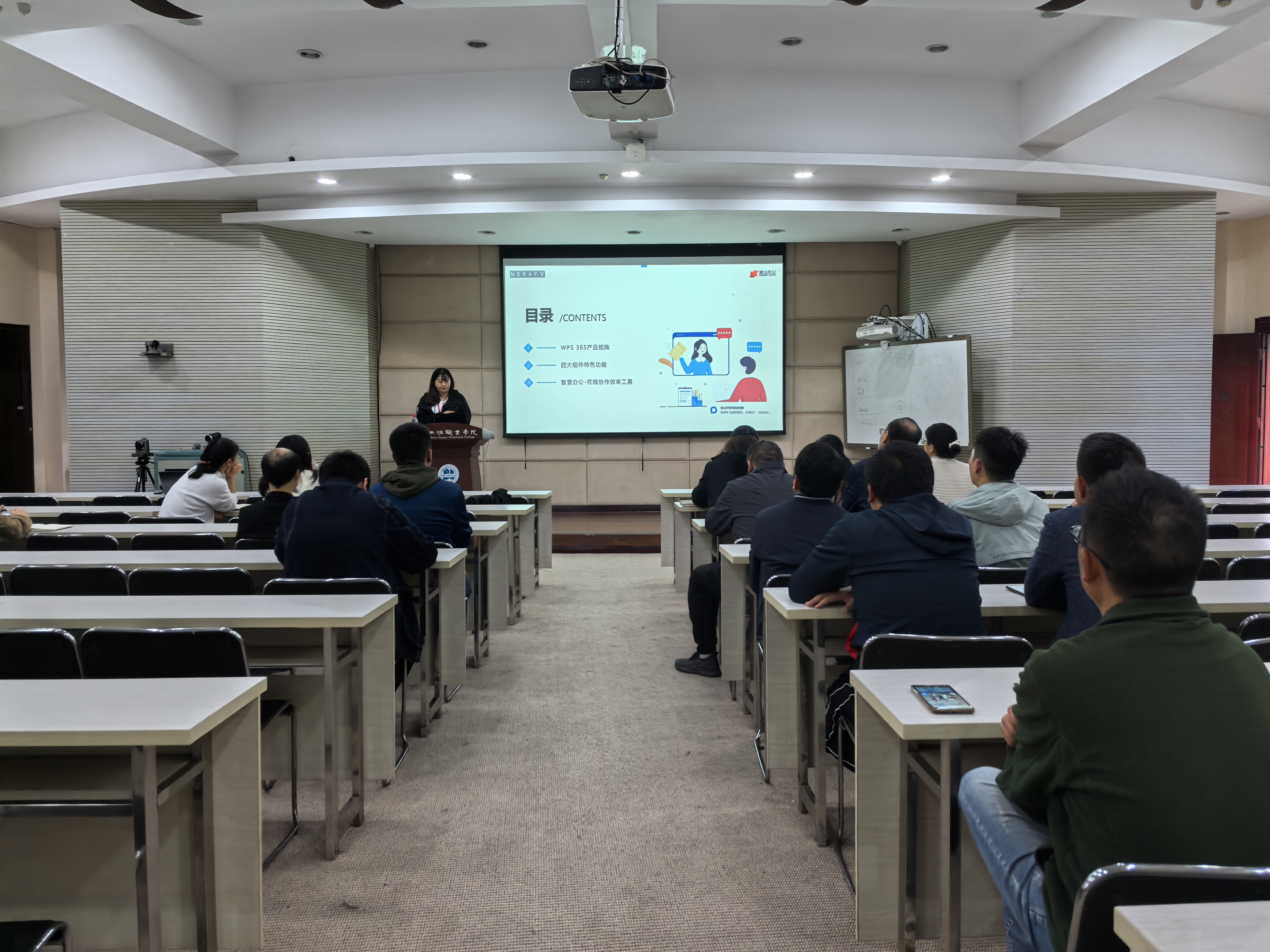 此次培训包括WPS365教育版客户端软件安装,WPS四大组件特色功能应用,WPS智慧办公工具使用等内容。
