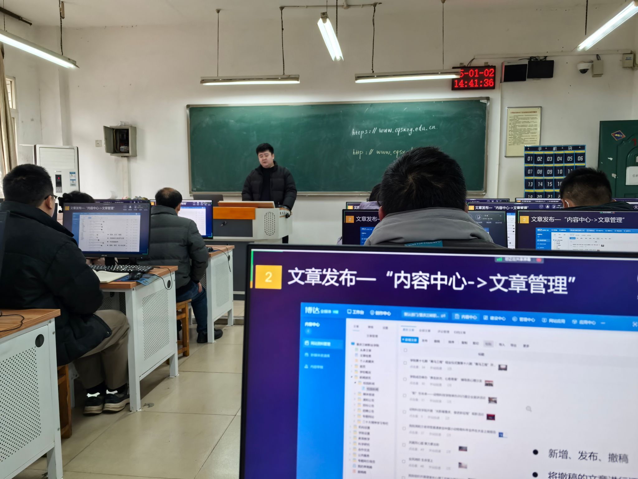 培训活动在信科楼112举行,邀请了博达网站群新平台的专家进行授课。专家首先对博达网站群新平台的基本情况进行了介绍,随后,重点围绕新平台的具体操作和使用技巧展开了深入讲解,包括网站内容的维护管理、文章资料的上传与处理、图片及视频等资料的维护、设置网站审核流程、网站安全性等操作。此外,培训还特别强调了网络安全的重要性,确保老师们都能在日常工作中加强网站安全管理,提高风险防控能力。为确保培训效果,培训过程中设置了实操环节。老师们纷纷登录博达网站群新平台,跟随专家的演示和指导,逐步进行操作练习。专家耐心解答老师们在使用过程中遇到的问题,帮助大家更好地理解和应用新平台功能。