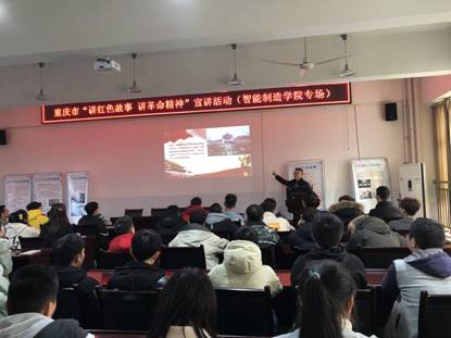 2019年12月3日星期二下午,奥训楼308会议室座无虚席,由重庆市委宣传部发起、重庆三峡职业学院承办的重庆市“讲红色故事、讲革命精神”示范宣讲活动走进智能制造学院,为智能制造学院大一、大二近200余名师生带来两场报告会。