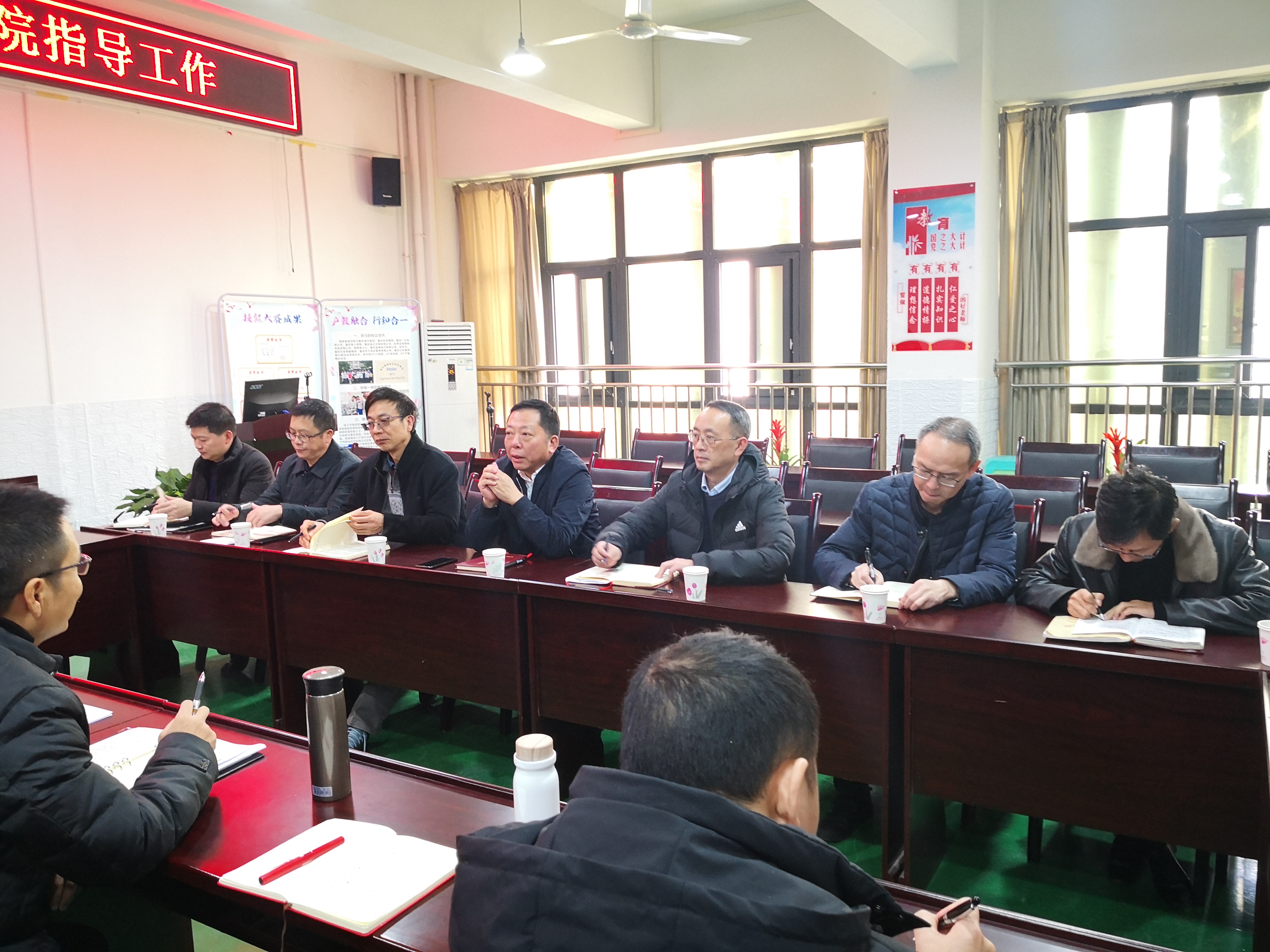 学院党总支书记、院长熊江首先就目前学院基本情况、推进的工作、所取得的成绩和存在的困难四个方面进行了汇报,然后就学院的发展现状和思路做了剖析。副院长徐明灿就招生就业工作、教学工作和校企合作工作进行了汇报。