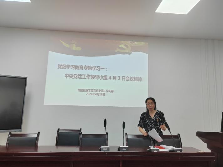 为加强党的纪律建设,按照学院党委党纪学习教育工作安排,4月18日中午,智能制造学院第二党支部召开了党纪学习教育专题会议。会议由支部书记谢红主持,支部全体党员同志参加学习。