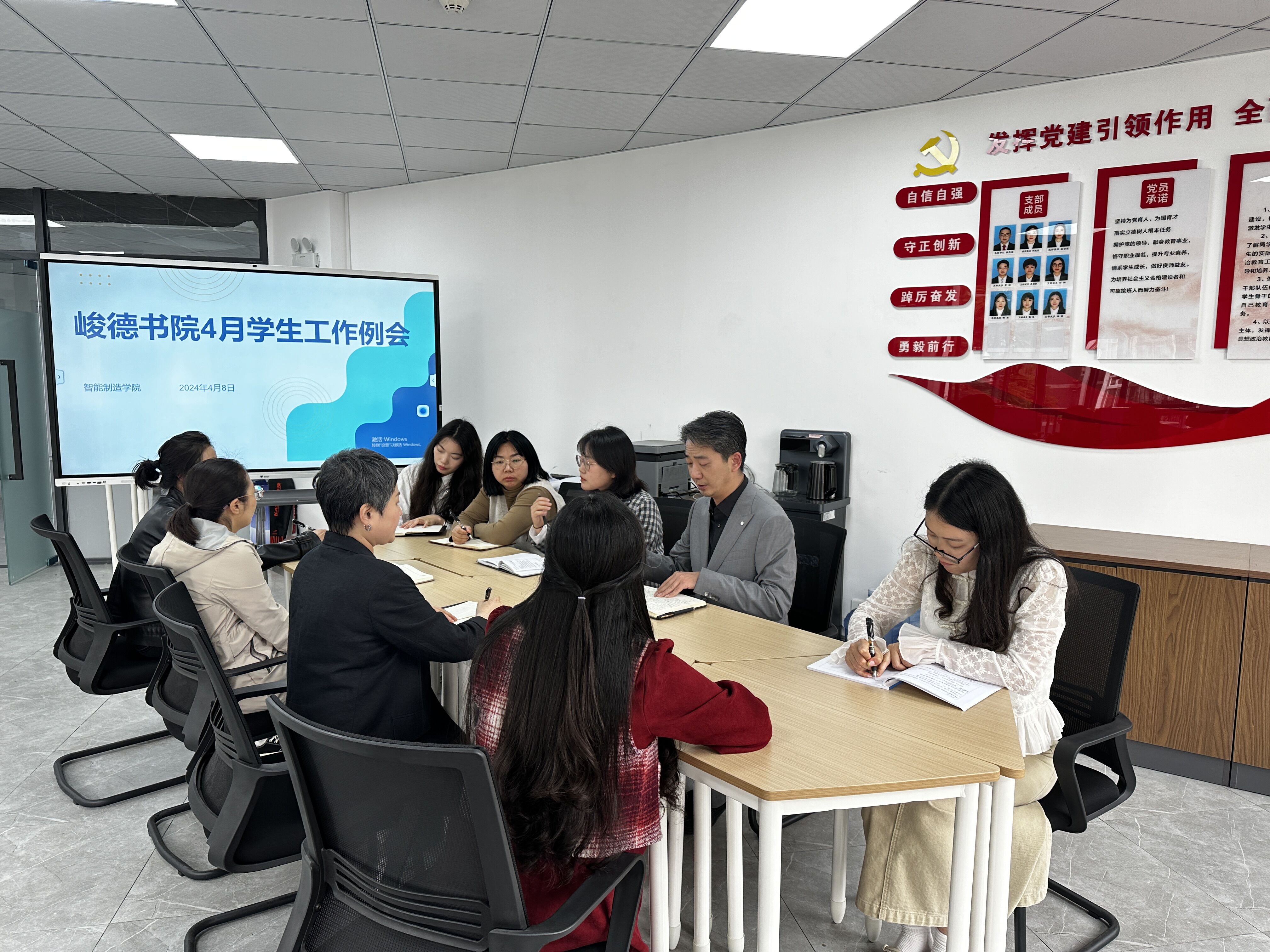 4月9日,智能制造学院学工科在峻德书院3楼综合办公室召开了4月份学生工作例会,党总支副书记黄滔,学院学工科、团总支相关老师及全体专职辅导员参加了会议,会议由学工科科长吴莉莎主持。