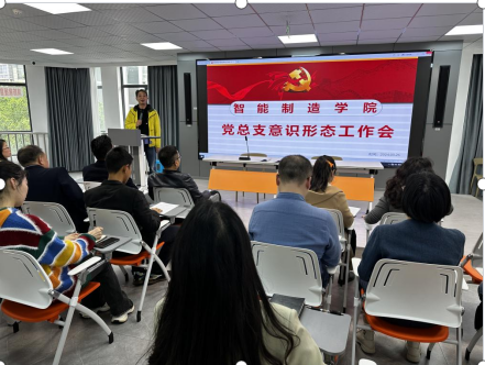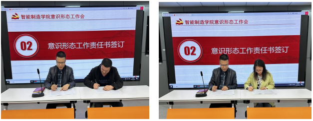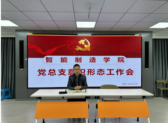 3月26日下午,智能制造学院党总支在峻德书院4楼思政演播厅会议室开展了意识形态工作会暨意识形态工作责任书签订仪式,会议由党总支副书记黄滔主持,学院班子成员、各党支部书记、教研室主任、专职辅导员参加了会议。