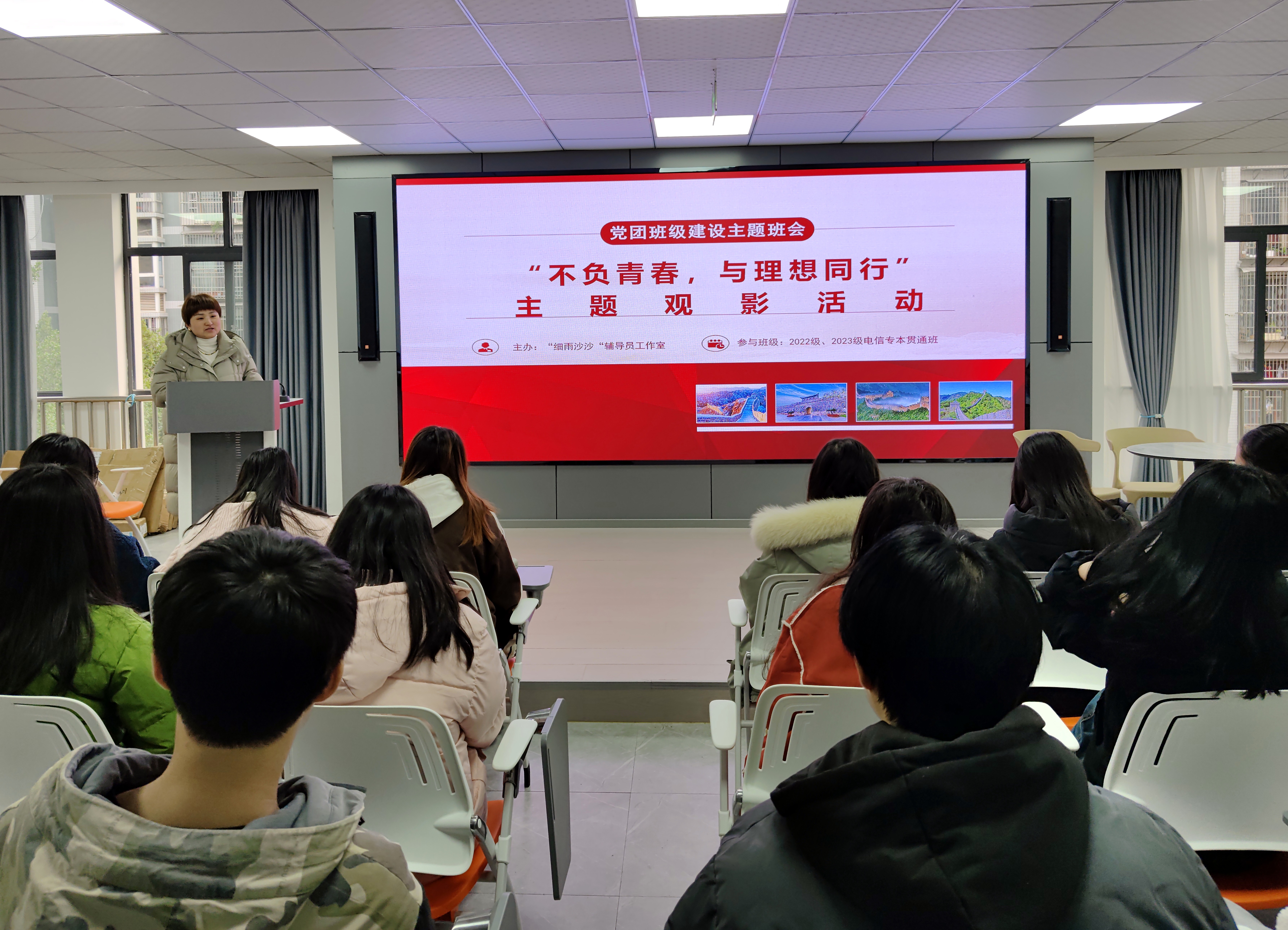 为深入学习习近平文化思想,全面推进智能制造学院党班团一体化建设,充分发挥电影思政育人的作用。12月22日,智能制造学院“细雨沙沙”辅导员工作室在峻德书院思政演播厅开展“不负青春,与理想同行”为主题的观影活动,以引导学院学生坚定理想信念,砥砺前行,勇担时代责任。学院师生代表共计100余人参与了此次观影活动。