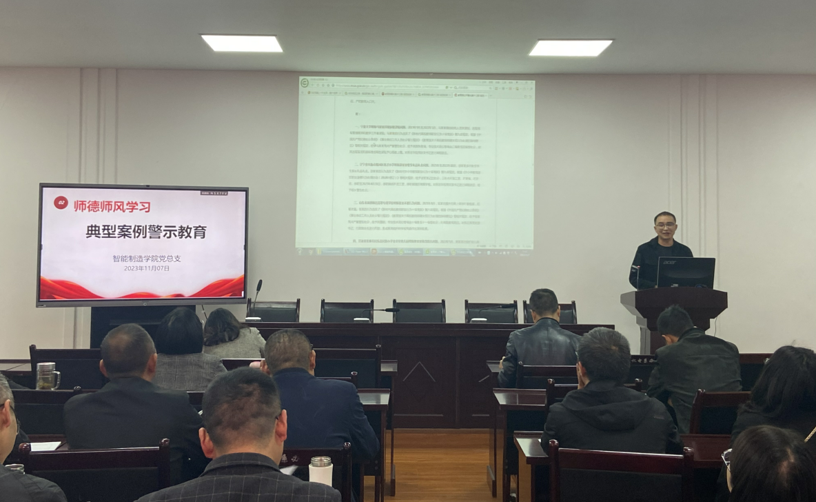 11月7日下午,智能制造学院在奥训楼308会议室开展了11月政治理论学习和师德师风教育,会议由党总支专职组织员杨德君主持,全体教职工参与了集中学习。