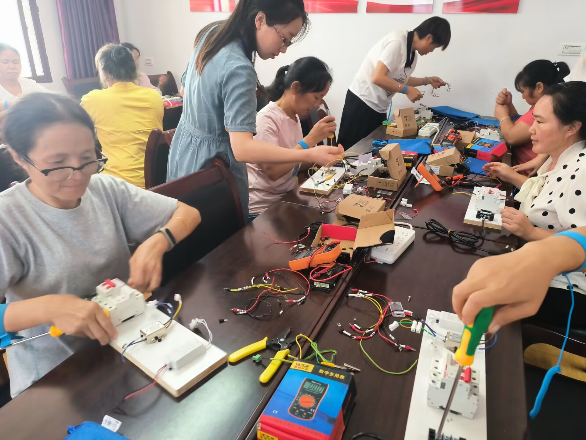 为进一步践行党的二十大报告精神,支部党员深学悟透,充分发挥自己的专业特长,8月17日,支部书记谢红带领专业教师胡建明走进万州区柱山乡,开展电子器件装配技术义务培训活动,提高老百姓对智能电器的认知能力,增强老乡们的实用电器装调技能,从而提升乡村人民的幸福感。