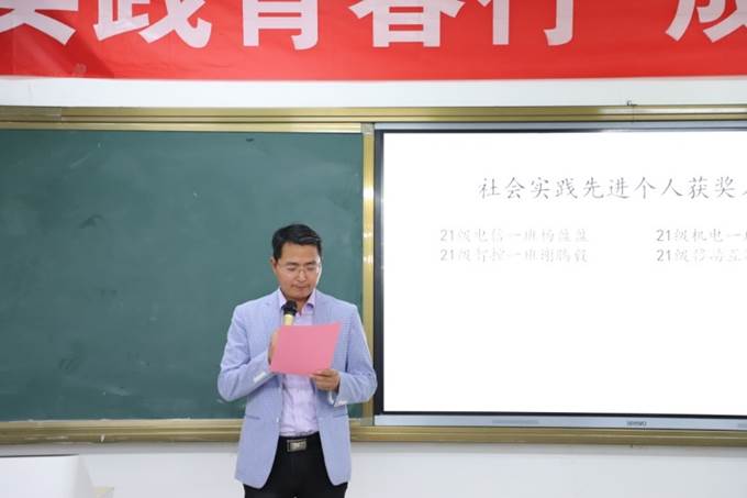 智能制造学院党总支专职组织委员杨德君宣布社会实践先进个人获奖名单