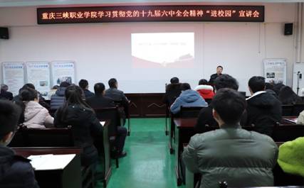 为深入学习贯彻落实党的十九届六中全会精神,12月21日,重庆三峡职业学院宣讲小分队走进智能制造学院,学校党委委员、纪委书记王凯为我院近60名师生宣讲了党的十九届六中全会精神。会议由学院党总支书记、院长熊江主持。