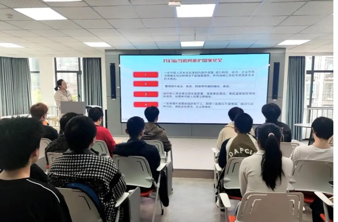 4月15日是第九个全民国家安全教育日,为深入学习贯彻习近平总书记关于全面加强国家安全教育的重要指示精神,引导学院团学骨干提升国家安全意识和素养,增强维护国家安全的思想自觉和行动自觉,4月12日,智能制造学院在峻德书院思政演播厅开展了2024年“青年先锋”培训,何陶老师围绕“总体国家安全观,创新引领10周年”开展了主题宣讲,参会的50余名团学骨干围绕“国家安全,青春挺膺”展开了热烈讨论。