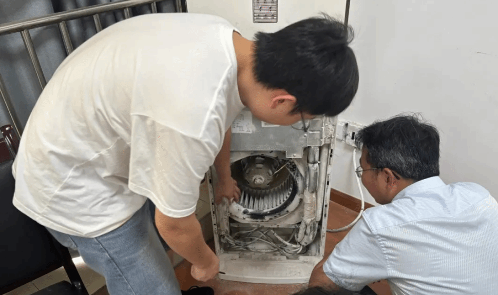 活动伊始,老师为成员们讲解空调内部结构、清洗要点及安全操作规范,让大家清晰知晓蒸发器、滤网等关键部件的清洁方法。随后,团队分工协作,有的负责拆卸空调外壳与滤网,有的专注清理散热片灰尘,有的对空调内部顽固污渍进行细致擦拭。过程中,成员们不怕脏累,认真对待每个环节,遇到难题及时向老师请教,在实践中提升实操技能。