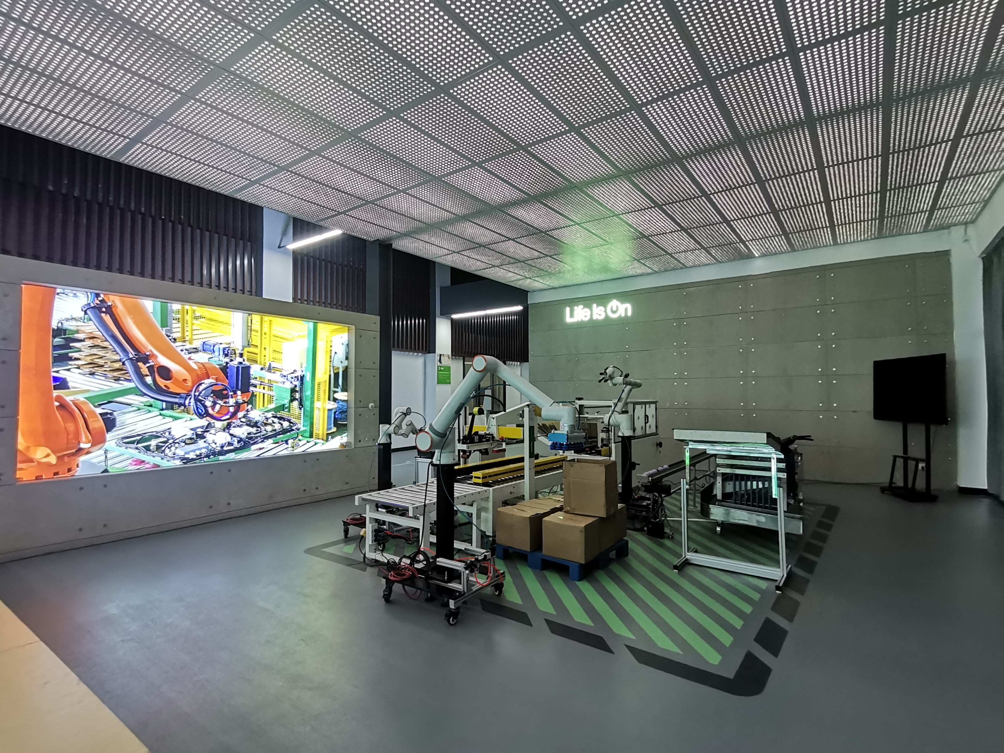 主要设备有施耐德绿色制造和智能控制三层架构平台、运动控制器M262和配套三轴机械装置、施耐德电气的过程控制系统及仿真学习平台M580、自动分拣包装产线等设备。