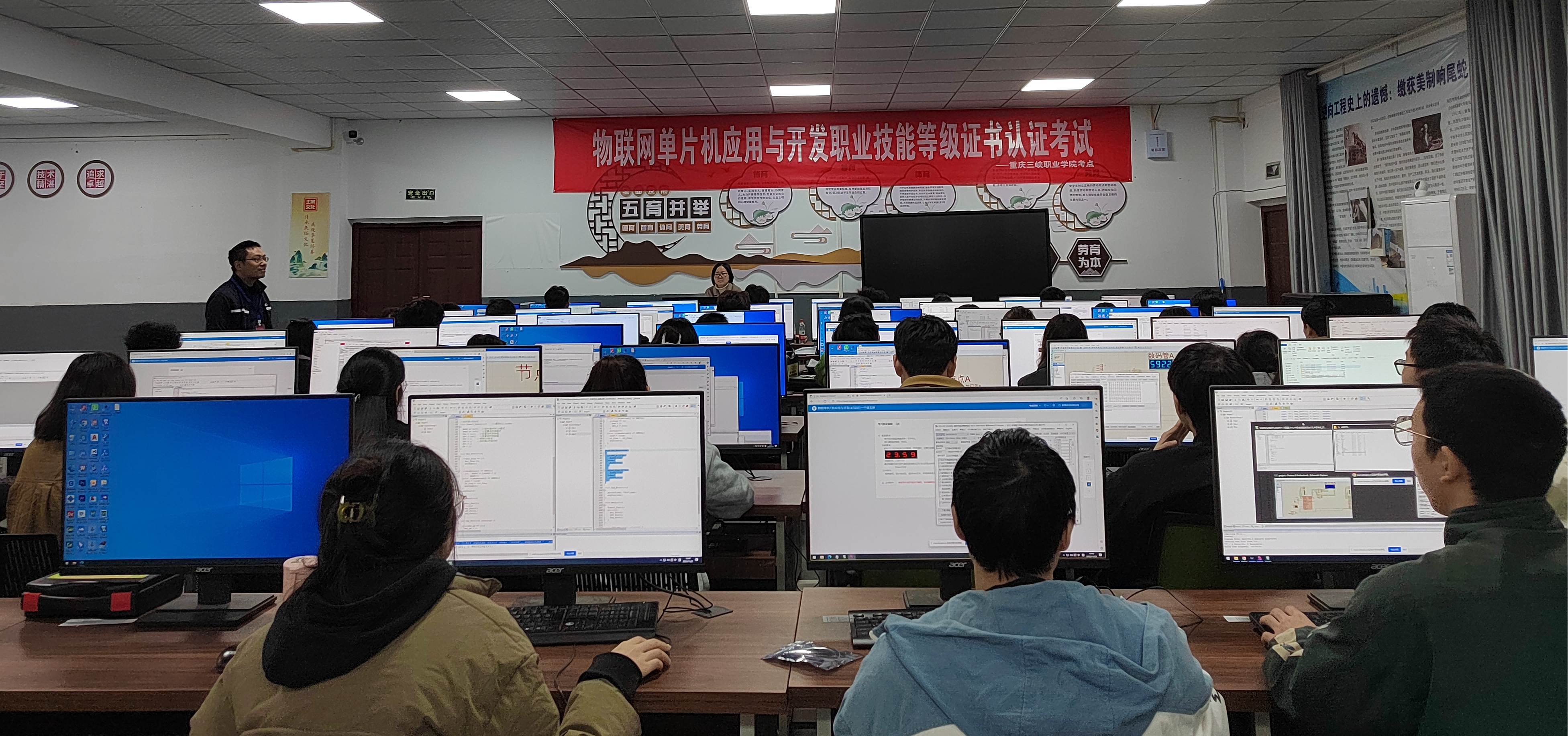 023年11月25日,智能制造学院“1+X”物联网单片机应用与开发职业技能等级考试在奥训楼210顺利开展,学院电子信息工程技术和移动互联应用技术专业100名学生参与此次考试。为确保考试工作的顺利开展,学院从师资培训、考前动员、考前培训、考务人员配备与培训、设备调试、组织考试等方面进行精心筹备,严格按照“1+X”证书制度考核管理规定部署考务组织工作,考试任务圆满完成。