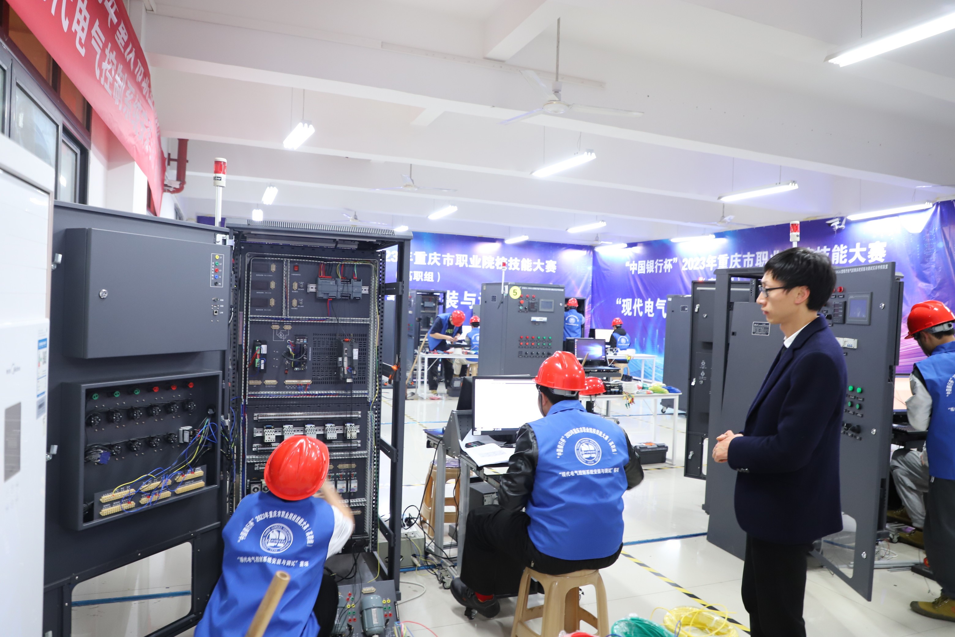 3月16日到18日,由重庆市教育委员会、重庆市经济和信息化委员会、重庆市财政局、重庆市人力资源和社会保障局联合主办的“中国银行杯”2023年重庆市职业院校技能大赛“现代电气控制系统安装与调试”赛项在我校奥训楼举行。有来自全市13所高职院校的52名参赛选手同台竞技,各展风采。
