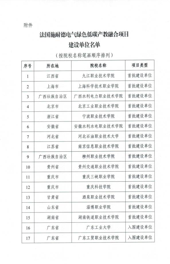 附件:关于启动“法国施耐德电气绿色低碳产教融合项目”建设工作的通知