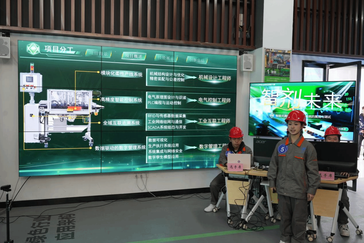 比赛中,团队严格遵循行业标准,凭借规范流畅的操作流程、先进的技术应用和清晰的现场讲解,在技能水平、职业素养、应用价值等五大评分维度中均表现优异。项目不仅体现了智能装备应用的前沿趋势,更契合产业转型升级的现实需求,其解决方案具备较强的实践推广价值。
