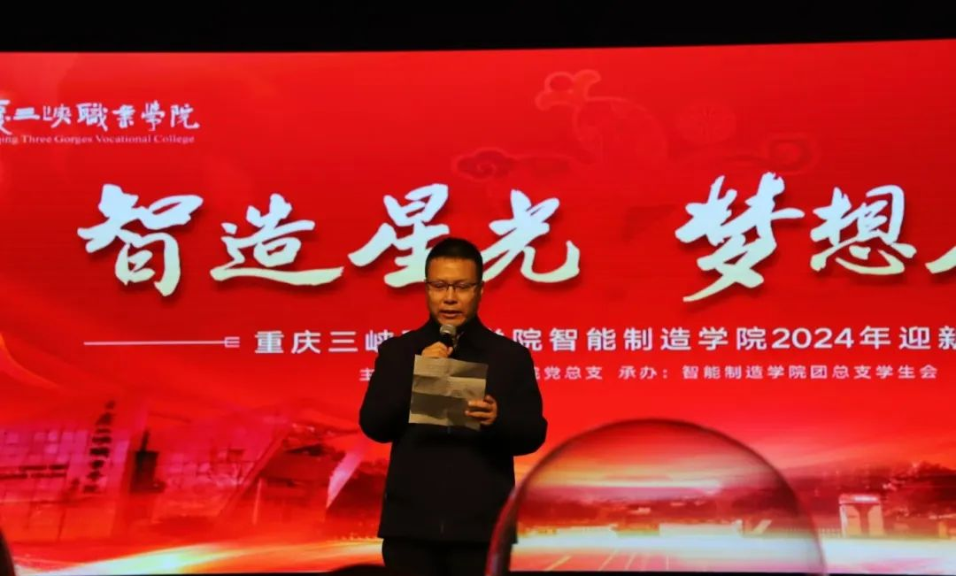 智能制造学院党总支书记、院长熊江书记为晚会致辞。他首先向学院老师们致以深深敬意,感谢他们不辞辛劳、默默耕耘;接着为台下同学们的不懈努力点赞。展望未来,他目光坚定,言语间满是期许:“愿同学们往后的每一天,都活力满满、喜乐安康。在奔赴未来的旅程中,怀揣勇气与梦想,绽放属于自己的绚丽光彩,书写独一无二的精彩人生!”