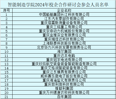 为认真落实党中央、国务院及重庆市教委关于2024年高校毕业生就业工作的决策部署,进一步深化校企合作,促进智能制造学院毕业生高质量充分就业,5月29日上午,智能制造学院在行政楼303会议室举行了校企合作研讨会。重庆三峡职业学院院长李炯光、副院长赵福奎、招就处、智能制造学院相关负责人以及21家企业代表参加了会议,会议由副院长赵福奎主持。