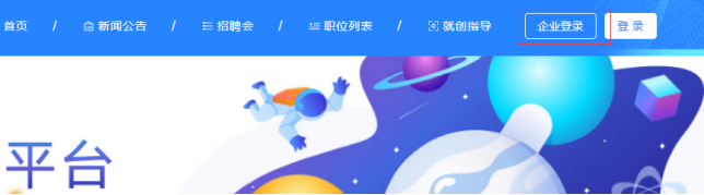 企业用户通过打开浏览器输入学校平台网址。打开门户首页,点击右上角【企业登录】跳转至登录页面。企业通过注册时所填的邮箱、手机号或机构代码进行账号密码登录。