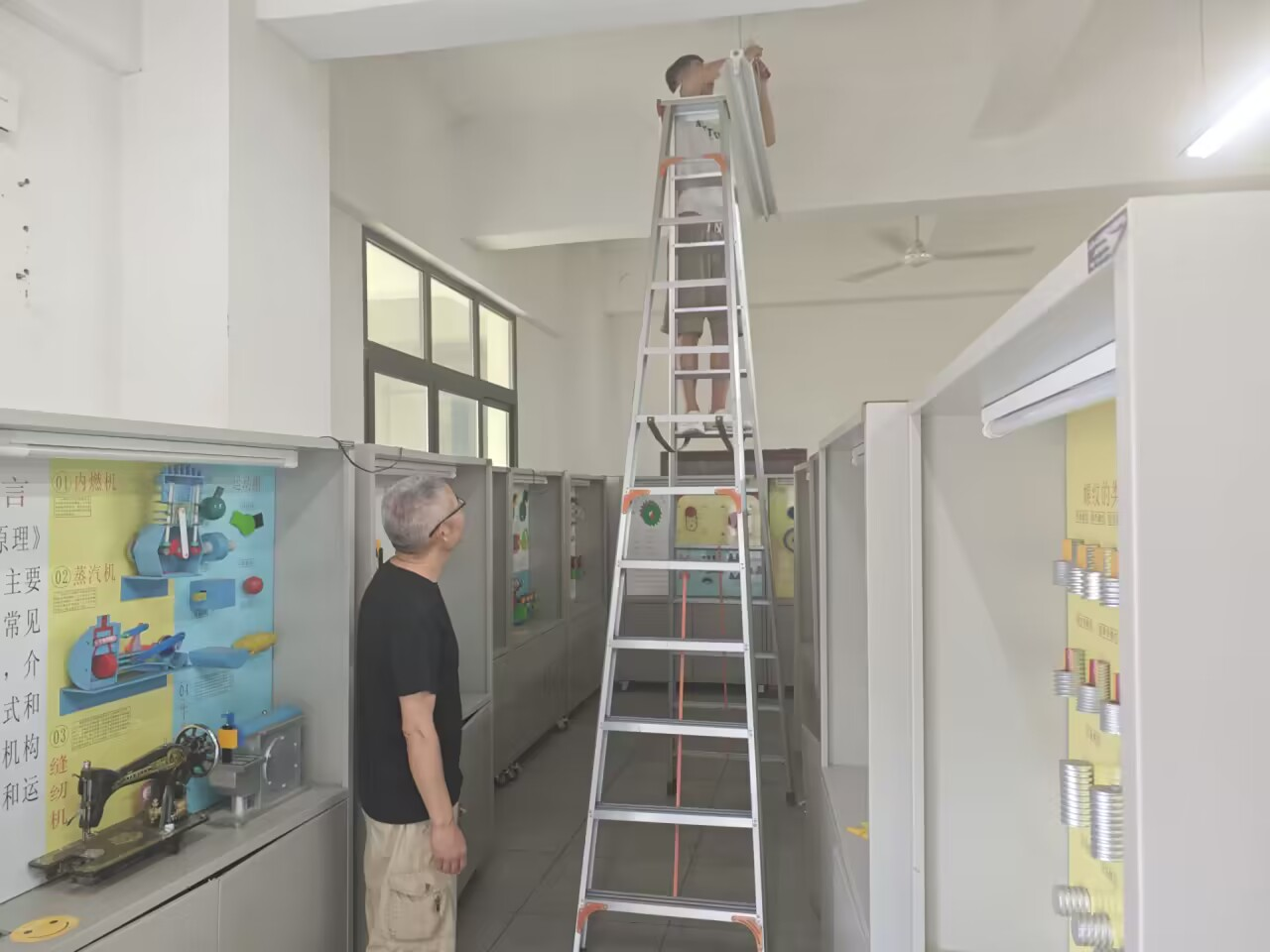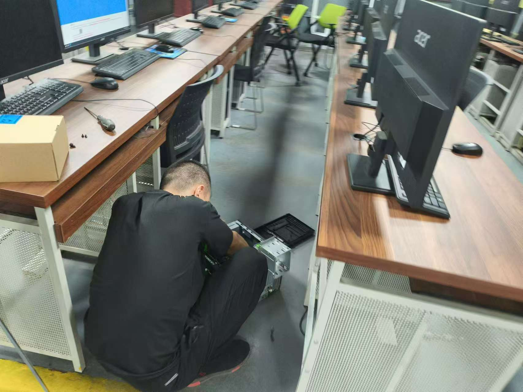 相关人员对灯具、机房电脑、损坏空调进行维修,以确保安全和舒适的学习环境。通过检查和维修工作,学校为学生提供了一个更加安全可靠的实训教学空间,为新学期的教学活动做好了充分的准备。
