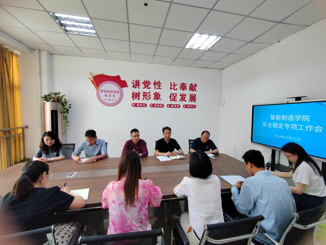 5月31日,智能制造学院在奥训楼207召开了安全稳定专项工作会,对学院安全稳定工作再强调、再督促、再推进。学院党总支书记熊江、副书记黄滔、各党支部书记、各教研室主任、学院安全员参加了会议,会议由黄滔主持。