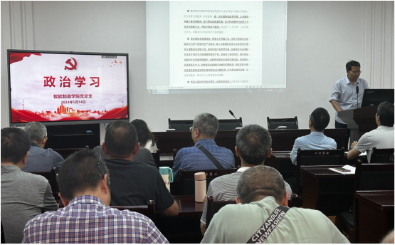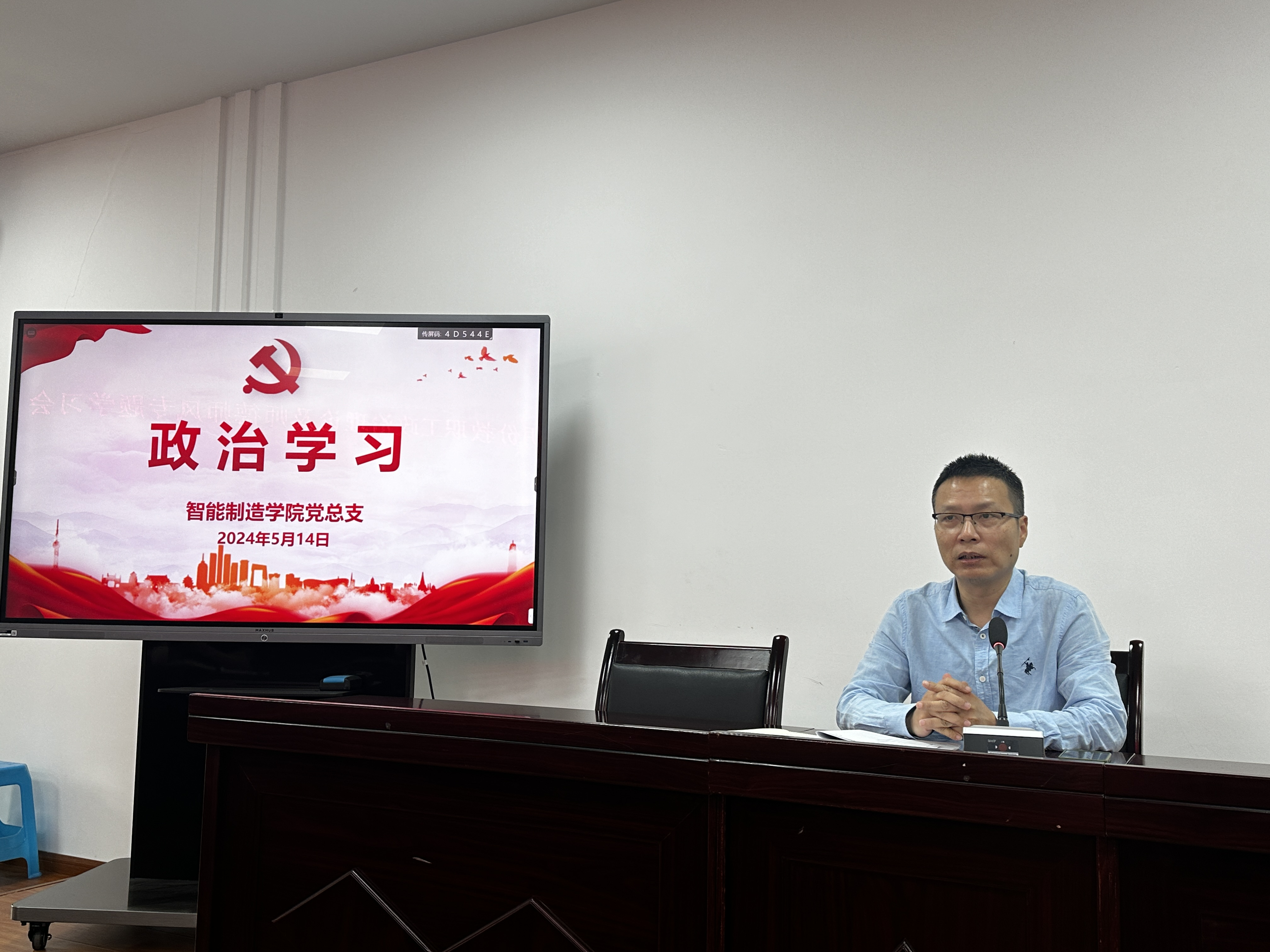 5月14日下午,智能制造学院在奥训楼308会议室开展了5月政治理论学习,会议由党总支组织委员杨德君主持,全体教职工参加了学习。