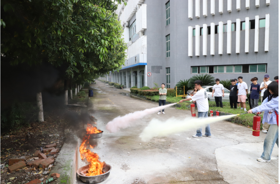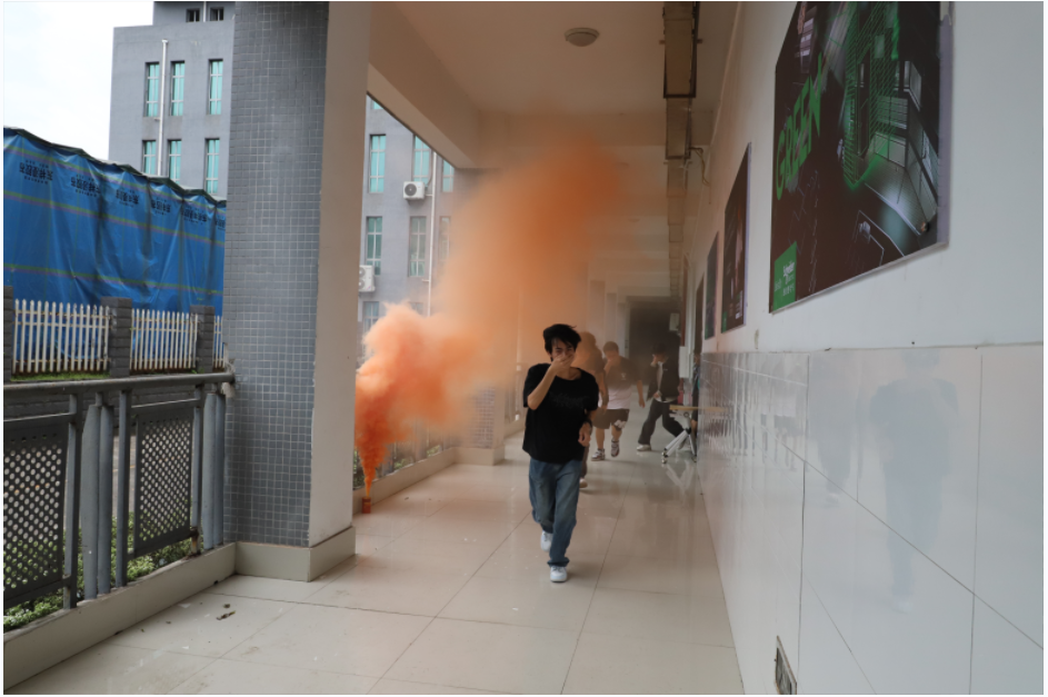随后,崔建兵介绍和演示了消防器材的使用方法。在安全处老师的指导下,学院师生分别进行了烟疏散逃生、灭火器器材操作演练。