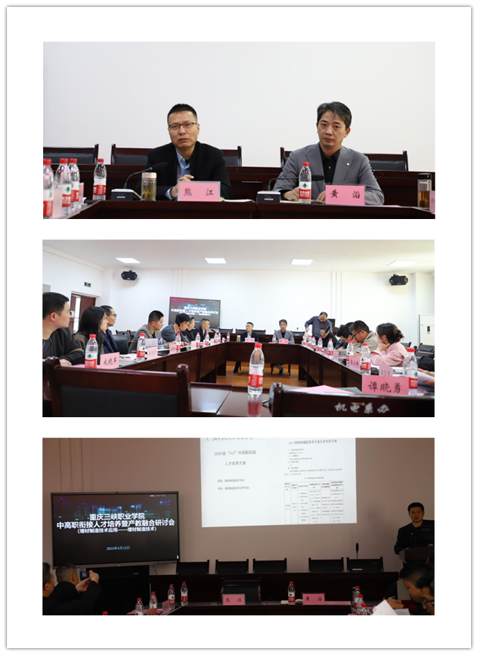 4月12日,智能制造学院在奥训楼308会议室成功举办增材制造技术专业产教融合暨中高职3+2人才培养研讨会。本次研讨会汇集了重庆瑞佳达科技有限公司、先临三维科技股份有限公司两家知名企业代表,以及来自忠县职教中心、巫山职教中心、云阳职教中心、开州职教中心、奉节职教中心的5所中职院校领导和教师。智能制造学院党总支书记、院长熊江,副书记黄滔及增材制造技术专业全体教师出席了会议。