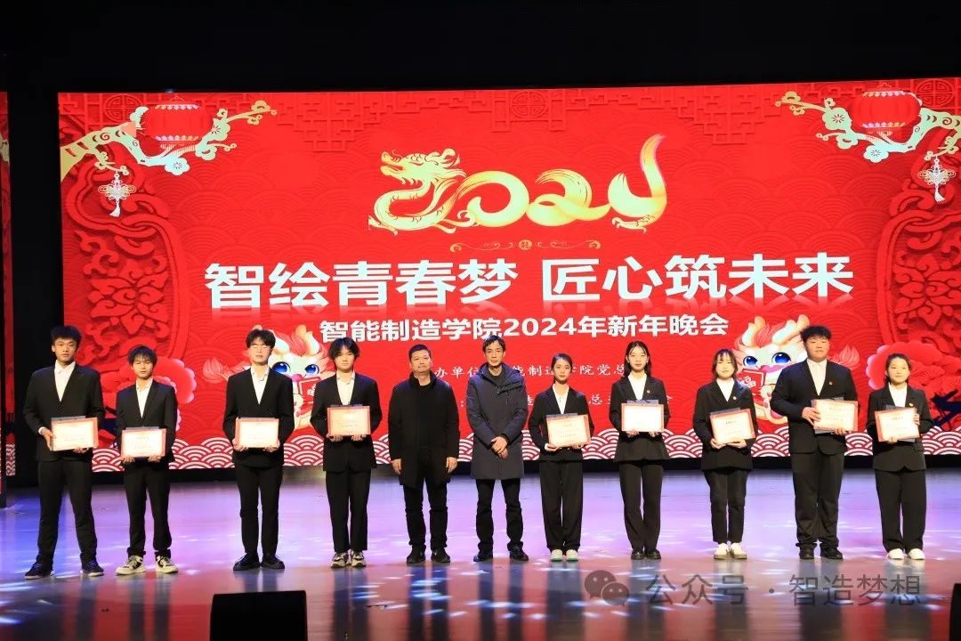 中场环节,对在2023年技能大赛、团学活动中表现优异的个人进行表彰,团委书记马绍文、学工部副部长陶毅分别为获奖者颁发了“智小星榜样人物”荣誉证书和奖品。