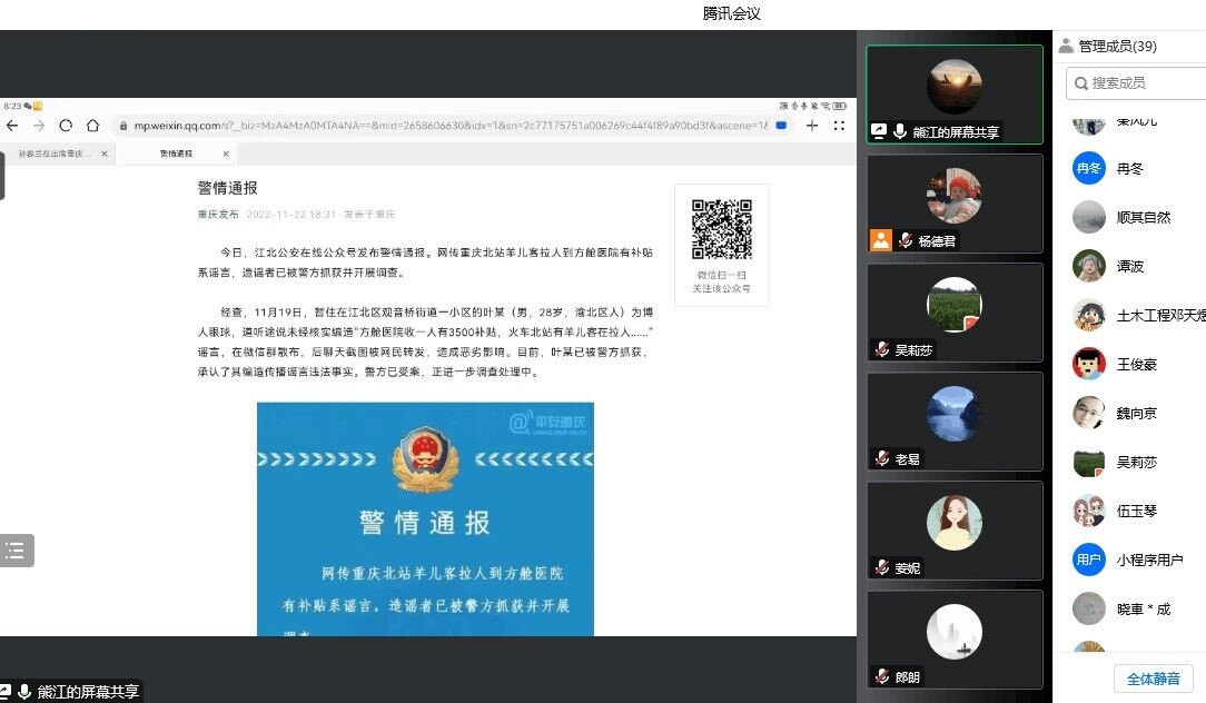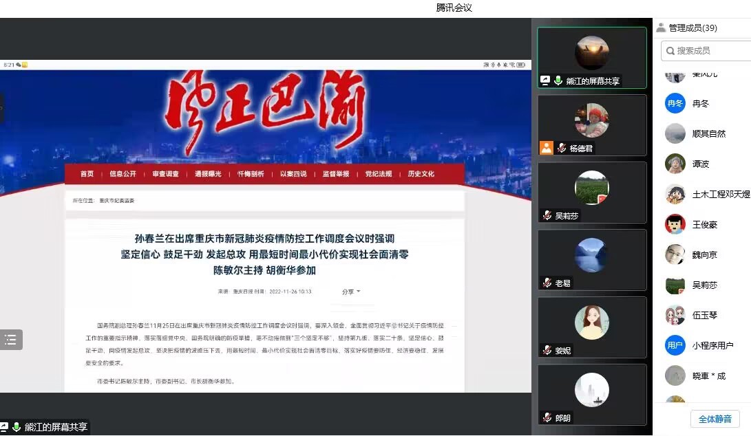 随后,副书记黄滔组织大家开展警示教育。学习了国务院副总理孙春兰在11月25日出席重庆市新冠肺炎疫情防疫工作调度会议上的讲话精神,并对近期疫情防控相关的网上警情进行了通报。他号召全体教师要遵守疫情防控相关规定,不信谣、不传谣;党员同志要亮身份、见行动,冲在抗疫第一线,助力学校疫情防控工作,充分展现特殊时期的特殊担当,以实际行动贯彻落实党的二十大精神。