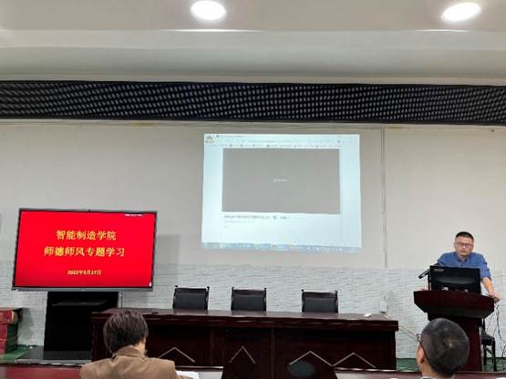 5月17日下午,智能制造学院在奥训楼308会议室开展了5月份政治理论集中学习,全院教职员工参加了学习,会议由智能制造学院党总支书记、院长熊江主持。