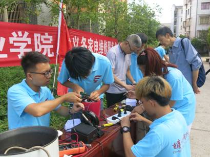 实践活动的最后两天,我院国情观察团的同学们为积极响应服务基层、服务三农的“三下乡”精神,合我院的专业特色,来到恒合乡集镇上,通过向村民发传单、讲解的方式进行安全用电宣传,并为凤安社区居民进行了义务家电维修。
