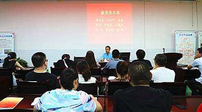 会上熊江书记首先宣布了新进党员的名单,对他们的加入表示热烈的欢迎和祝贺,并对他们提出了殷切希望。随后,在熊江书记的带领下,全体党员老师和新进党员们面对鲜红的党旗一同重温了入党誓词。