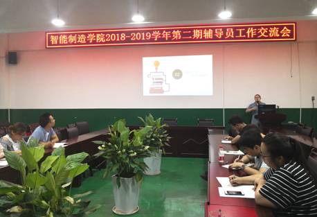 6月25日下午,智能制造学院2018-2019学年第二期辅导员工作交流会在奥训楼308会议室召开。学院党总支书记院长熊江教授、副院长徐明灿老师以及学院全体辅导员参加了本次交流会。会议由学院学工科科长吴莉莎主持。
