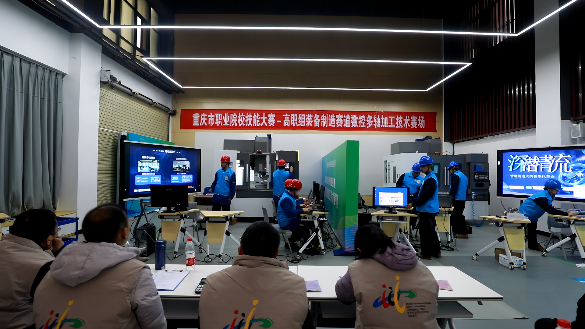 1月13日至16日,由重庆市教育委员会、重庆市经济和信息化委员会、重庆市财政局、重庆市人力资源和社会保障局主办,我校承办的2024年重庆市职业院校技能大赛高职组“数控多轴加工技术”赛项在我校成功举办。大赛汇聚了全市13所高职院校的25支精英队伍。