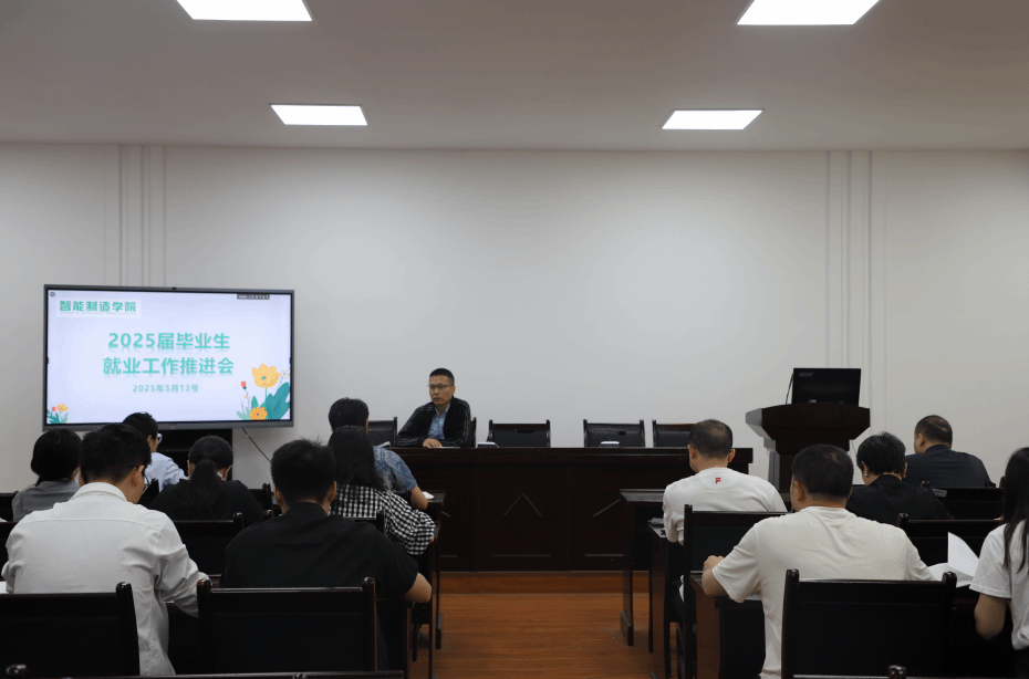 为深入贯彻落实教育部及学校关于毕业生就业工作的决策部署,全面研判当前就业形势,压实主体责任,扎实推进2025届毕业生高质量就业,5月13日下午,智能制造学院召开2025届毕业生就业工作专题推进会,学院党总支书记、院长熊江、副院长魏向京、各教研室主任以及毕业班辅导员参加了会议,会议由党总支副书记黄滔主持。