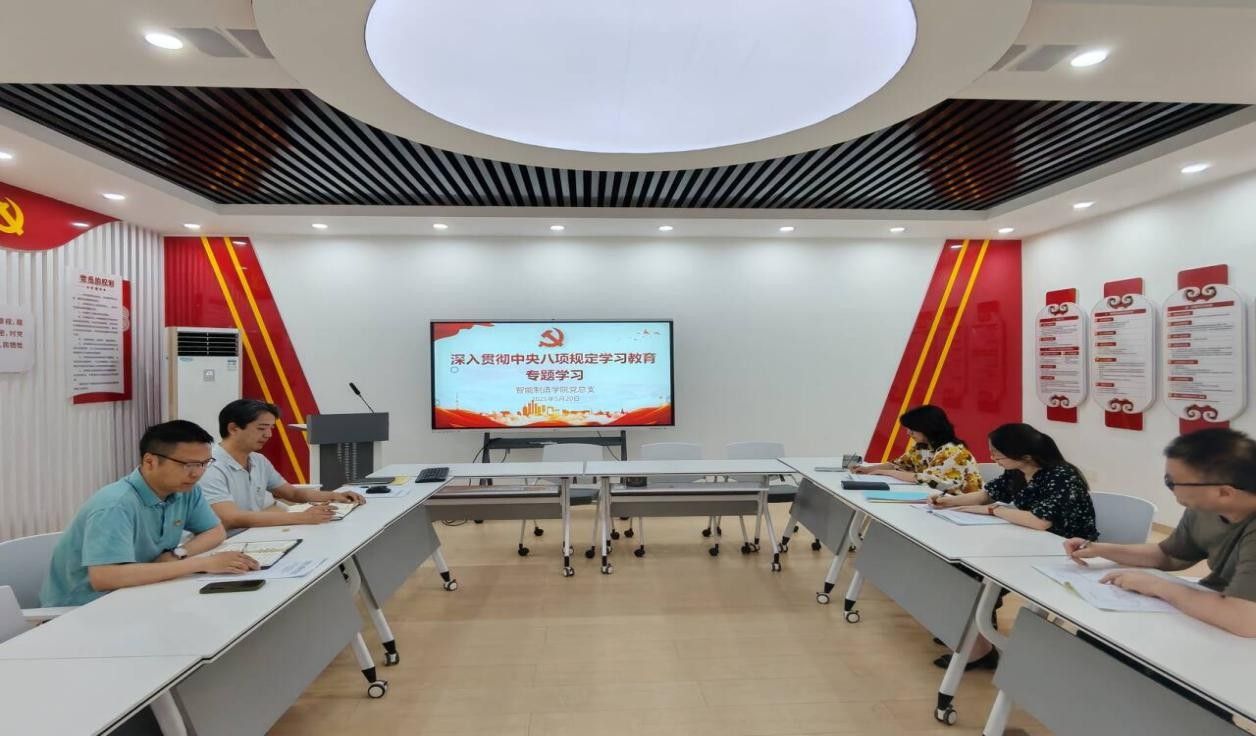 2025年5月20日中午,智能制造学院党总支在奥训楼304会议室开展了深入贯彻中央八项规定精神学习教育专题学习,会议由党总支书记熊江主持,党总支副书记黄滔及总支委员、各党支部书记参加会议。
