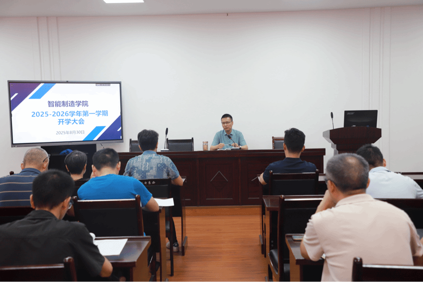 8月30日,智能制造学院在奥训楼308会议室召开了2025-2026学年第一学期开学大会,全院教职工参加了此次会议,会议由智能制造学院党总支书记、院长熊江主持。