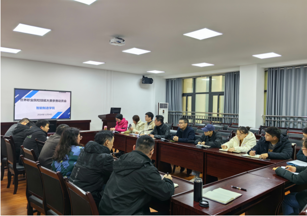 为积极备战2025年重庆市职业院校技能大赛,积极推进“五金工程”建设,12月4日,智能制造学院召开2025年世界职业院校技能大赛参赛动员会,智能制造学院党总支书记、院长熊江,副院长郎朗,学院承赛、备赛的赛项负责人及指导教师参会。首先,智能制造学院副院长郎朗作为2024年争夺赛、排位赛、冠军赛的赛事评委,结合学院实际情况进行了经验分享及备赛指导,郎朗从大赛整体流程、争夺赛主要形式(备赛与承赛)、大赛评分细则、大...