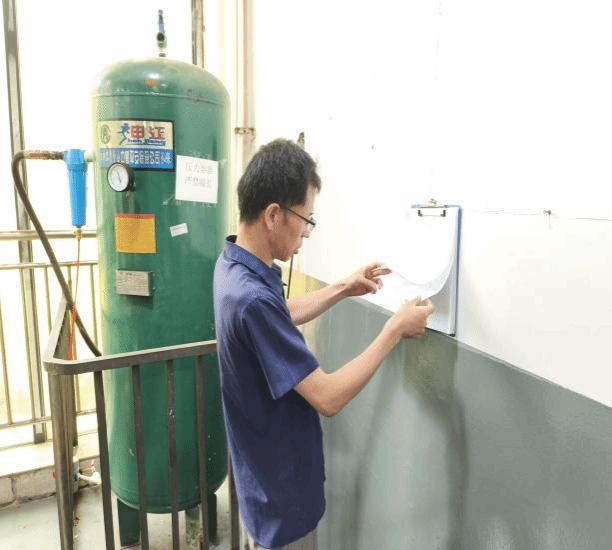 在本学期末,根据学校安全检查条目及整改要求,智能制造学院实习工厂对安全检查整改事项进行逐项复查并再次排查工厂车间是否存在安全隐患,确保实习工厂车间暑期前零隐患和暑期持续安全。实习工厂安全人员对实训车间的消防安全器材进行集中归置。并集中到车间出口醒目位置,便于突发情况及时使用。对两台储气罐已完成定期检测。已对临期压力表进行检测并及时更换,保证设备安全正常运行。集中放置后的消防设施角储气罐压力表已完成检测并更换已配备“...
