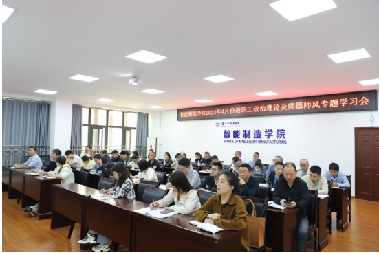 4月23日下午,智能制造学院在奥训楼308会议室开展了4月政治理论学习,会议由党总支组织员杨德君主持,全体教职工参加了学习。 会上,第二党支部组织委员易云莉领学了《习近平总书记在2024年春季学期中央党校(国家行政学院)中青年干部培训班开班之际作出的重要指示精神》、《习近平总书记关于发展新质生产力的重要论述(节选)》和《习近平总书记在湖南考察时的重要讲话精神》等相关内容。第一党支部纪检委员陈雄同志以《李建...