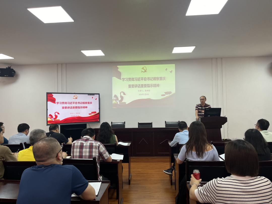 7月5日下午,学校党委委员、组织部部长熊辉俊在奥训楼308会议室为智能制造学院师生做习近平总书记视察重庆重要讲话指示精神专题宣讲,会议由学院党总支组织员杨德君主持。 会上,熊辉俊围绕深刻领会把握习近平总书记对重庆工作成绩“六个新”的肯定勉励、习近平总书记赋予重庆的“两大定位”、习近平总书记对重庆高质量发展明确的 “四项任务”、以“六个坚持”谱写西部大开发新篇章的重大部署及习近平总书记对加强党的建设提...