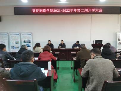 为保障新学期工作顺利开展,落实本学期开学各项任务,2022年2月25日上午,智能制造学院在奥训楼308会议室召开了2022年开学工作会,全院教职工参加了会议,会议由智能制造学院党总支书记、院长熊江主持。会上,熊江书记首先传达了学校党委和行政对新学期的要求和希望,他指出2022年将会是机遇与挑战并存,是学院各项事业上档升级的关键时期,希望全体教职员工全员参与、全心投入,敢于担当、勇于创新,将智能制造学院的各项工...