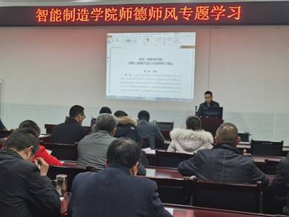 为进一步加强二级学院师德师风建设,严格落实《新时代高校教师职业行为十项准则》。11月19日下午,智能制造学院党总支在奥训楼308会议室召开了师德师风教育专题学习,学院全体教职工参加会议。会上,熊江书记带领大家学习了《习近平总书记教育重要论述》第九讲,随后全体教职工观看了教育系统时代楷模李保国的先进事迹。会议最后,熊江书记强调,要学习李保国同志心系群众、扎实苦干、奋发作为、无私奉献的高尚精神,把教...