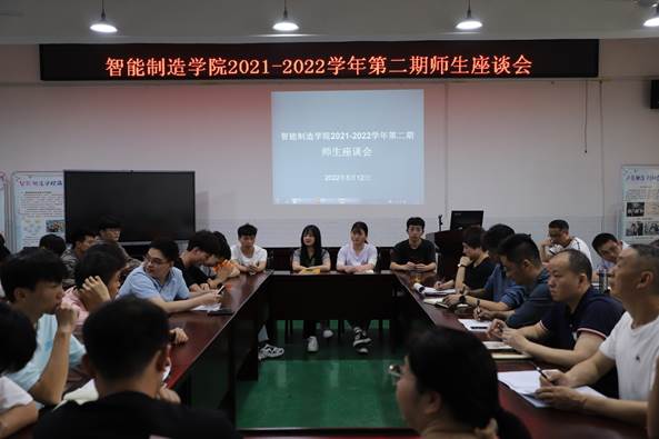 智能制造学院召开2021-2022学年第二期师生座谈会 为进一步了解学生学习生活状况,促进教学相长,5月12日下午,智能制造学院在奥训楼308会议室召开了2021-2022学年智能制造学院第二期师生代表座谈会。学院党总支副书记黄滔、副院长郎朗、各专业大类负责人、实训中心主任、学工科、教学科负责人,各班级代表共计30余名同学参加了会议。会议由智能制造学院党总支副书记黄滔主持。 会上,各班学生代表踊跃发言,针对学习、生活、...