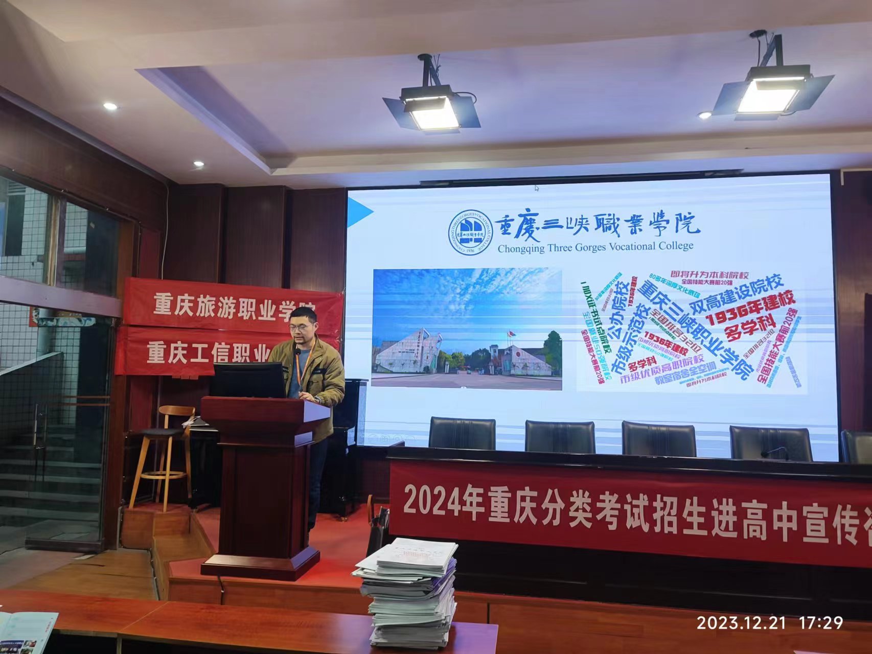 近期,学院招生就业处组织学校招生宣传队伍,深入奉节、开州、石柱、彭水、南川、巴南、长寿等10个区县的30所中学,开展了2024年重庆市分类考试招生政策解读及线下招生巡展活动。